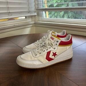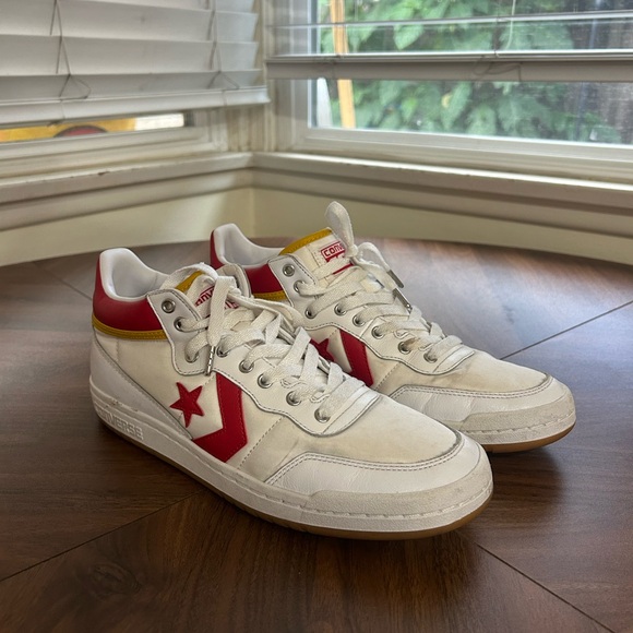 Classic Converse sneakers. White mid upper with brown soles. 80’s vibe! Men’s size 9