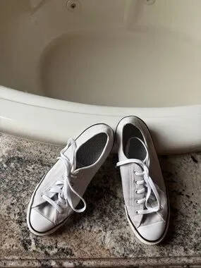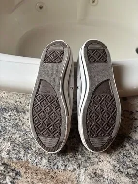 Comfortable light gray sneakers in excellent condition.