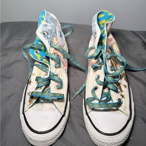 A unique and vibrant pair of Converse kicks, perfect for skate, street style, or everyday wear.