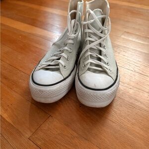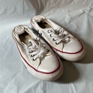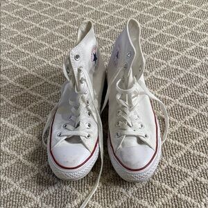 Classic high-top design. White canvas with red accents. Perfect for everyday wear.