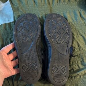 Sleek all-black Converse high-tops. Features signature star logo on the side.