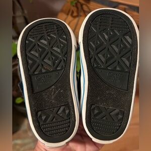 Converse high tops for babies!! Cutest little Chuck Taylor's ever. Lace up with thick hook & loop cover to keep laces in place.