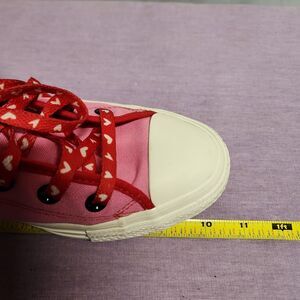 Large red heart-shaped ankle patch with the classic "Converse Chuck Taylor All Star" logo inside it.
