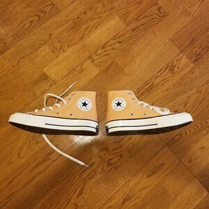 Like New, trending color Converse All Star canvass high top sneakers. orange/ salmon color. Unisex size 7.5 for women and 5.5 for men.