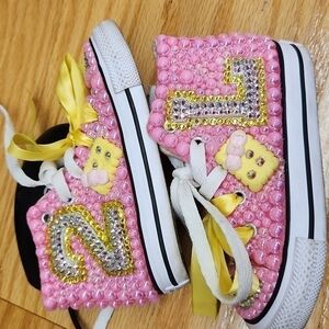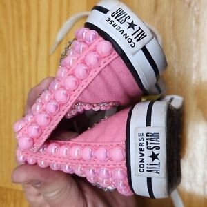 Converse all star chuck Taylor Blinged out toddler size 7. pink L 2 embellished special occassion shoes. great for birthday photos. pink yellow rhinestones beaded.