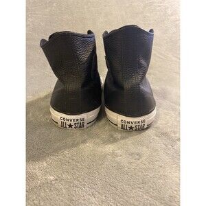 The product is a pair of men's size 13 black high-top Converse All Star leather shoes. These vintage sneakers feature a classic solid black color with a lace-up closure, perfect for activewear, casual, or workwear occasions. Made with leather upper material, these shoes are part of the Converse Chucks All Star Chuck Taylor product line, known for their iconic style and comfort. Designed for all seasons, these Converse All Star shoes are a timeless and versatile addition to any man's wardrobe.