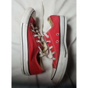 Converse AllStar Chuck Taylor Low Top Lace Up Red Canvas Sneakers - Men 4 and Womens 6. Condition is Pre-owned, these shows signs of wear. Shipped with USPS Priority Mail.