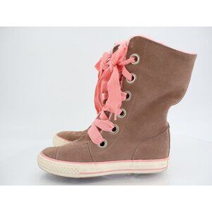 Converse All Star Chuck X-HI Boots US 2 Tan Suede Pink Faux Shearling Lace Up