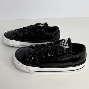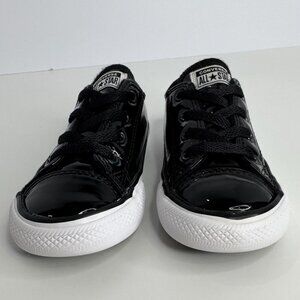 Converse All Star Girl Patent Leather Sneakers Black Child Kid Size 8