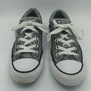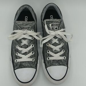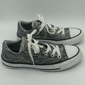 Converse All Star Women's Gray Marble Upper Round Toe Five Eyelet Lace Up Low Top Sneaker Shoe. Textile Upper/Lining. Rubber Sole. Rubber Toe Cap. Cushion Footbed. Minimal Staining On Upper Sole/Sole/Shoe Lace Per Pictures.