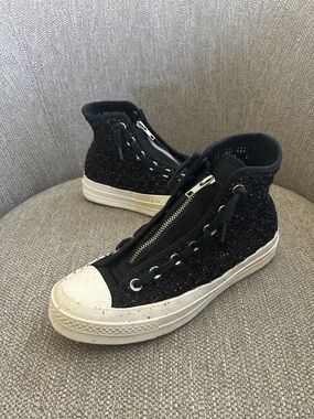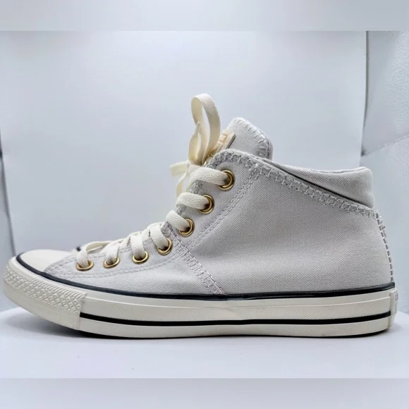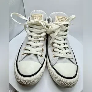 Converse All Star High Top Sneakers Light Gray Gold Eyelets Women’s size 9