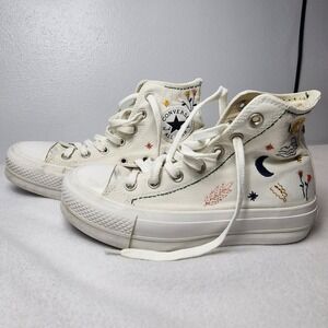 Converse All Star High Top Sneakers Womens 5 Canvas Embroidered Cosmic Sun Moon