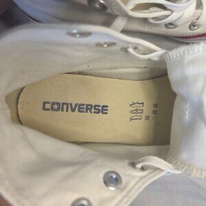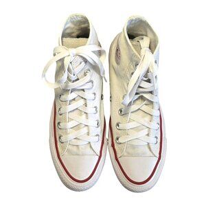 These Converse All Star high-top sneakers embody timeless style and functional design. Crafted from durable white canvas, they feature the iconic star logo, sturdy rubber soles, and a classic lace-up fit for comfort and support. Ideal for casual wear, these shoes seamlessly blend versatility with a vintage aesthetic.