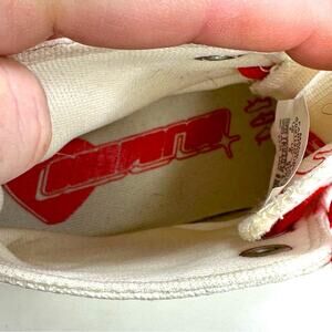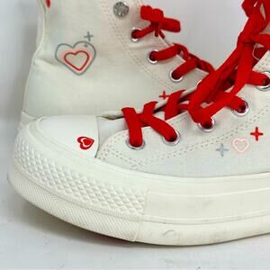 Item in Very Good PREOWNED Condition. Some marks on rubber and wear on soles. SEE PHOTOS. Brand new laces, Canvas is cream, Hearts decals are excellent.