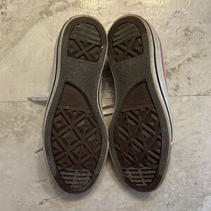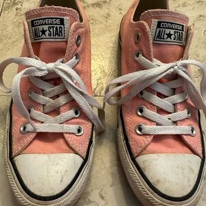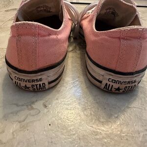 Light pink Converse sneakers with classic white laces. Iconic All Star design.