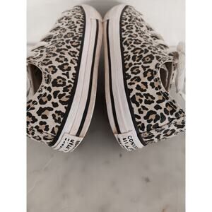 Converse All Star Low OX Youth Size 2 Sneaker Cheetah Print 366297F. Pre-owned with scuffs on both sneakers, the lace head is missing on the right shoe. Please see the pics above for details. Otherwise it is in good used condition with regular wear.