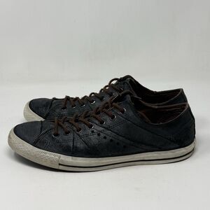 Converse All Star Low Sneakers Mens 10.5 Black Distressed Leather Open Zip Shoes