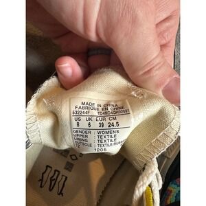 Eye-catching sneakers deliver a striking dose of bold flair to your footwear collection. The black canvas provides a sleek backdrop for the vibrant chevron pattern, creating a captivating visual contrast that's both modern and playful. These low-top Converse All Stars feature the iconic star logo on the tongue, a testament to their timeless appeal and enduring style. Versatile enough for everyday wear yet unique enough to make a statement, these sneakers will elevate your casual looks with a pop of color and personality. Ideal for adding a touch of whimsy to your weekend outings, concerts, or casual hangouts with friends.