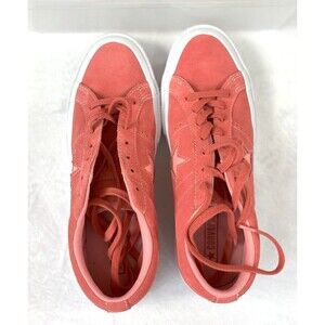The Converse All Star Low Top Unisex Laceup Suede Sneakers in size 9.5 are a stylish and versatile option for women looking for a comfortable and trendy shoe. These solid pink sneakers feature a round toe shape and lace-up closure, making them perfect for casual outings, travel, or workwear during the fall, winter, or spring seasons. Made with suede upper material, these sneakers from Converse offer a classic and timeless look that can easily be paired with various outfits. Whether you're heading to the office, running errands, or meeting friends for coffee, these sneakers are a fashionable choice for any occasion.