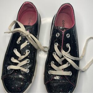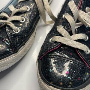 Converse All Star Low Tops Size Kids 2 Shiny Black Stars Moons PRELOVED