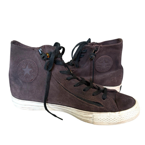 Converse All Star M 8.5 / W 10.5 Double Zip Dark Brown Suede Hi Top Sneaker