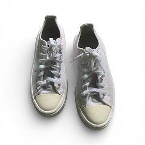 Keywords: Converse Chuck Taylor, Quilted sneakers, Low top shoes, White canvas, Black accents, Casual footwear, Everyday wear, Street style, Comfortable shoes, Classic sneakers, Fashion sneakers, Versatile shoes