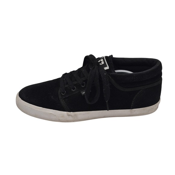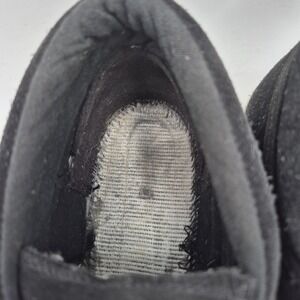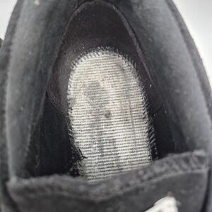 Color: Black leather upper with black laces, black padded collar, white rubber midsole, and gum rubber outsole.