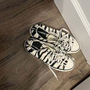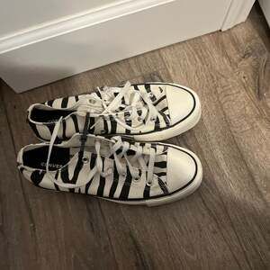 Converse Chuck Taylor All Star Low Top Sneakers in a bold Zebra Print. Designed for a unisex fit, these classic canvas lace-ups feature the iconic rubber toe cap and vulcanized sole. The black and white animal print adds a stylish edge to any casual outfit. Used condition with little to no wear to the soles and canvas as shown in photos. Perfect for everyday streetwear or adding a pop of pattern to your look. Men's size 7.5, Women's size 9.5.