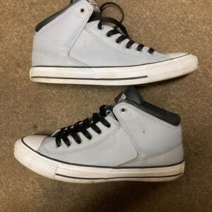 Converse Chuck Taylor high top light gray sneakers. Men’s size 8/Women’s size 10.