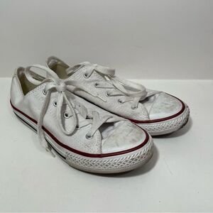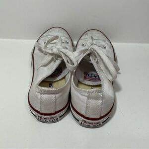 Gently worn boy’s size 3 converse white sneakers. Please review all photos for any signs of wear-pictured as is. Disclaimer: Any items with any wear/staining has not been treated, and unsure of ability to remove/treat condition. Comes from a smoke free home, bundle with other items to save & minimize shipping cost.