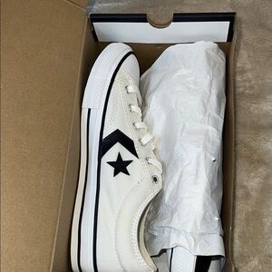 Stylish Converse All Star sneakers in white with black accents. Perfect for casual wear.