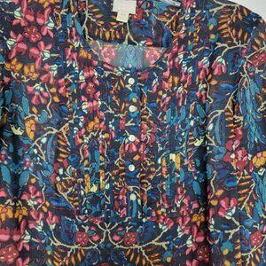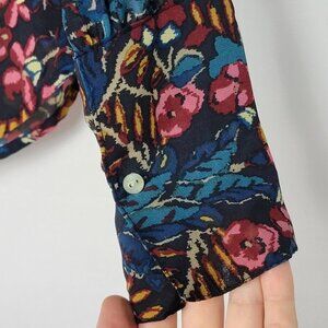 Converse All Star Womens Floral Blouse XS Sheer Chiffon Boho Hippie Oversized