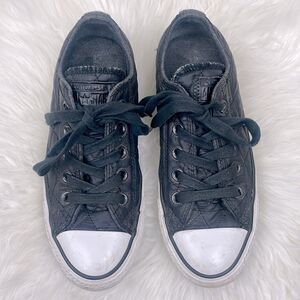 Converse All Star | black low cut 5.0 woman - 3.0 men , padded stitch look like leather look. In good used condition.