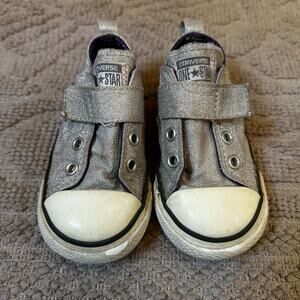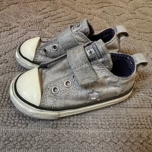 Converse All Star silver glitter star side low top velkro sneakers SIZE 6