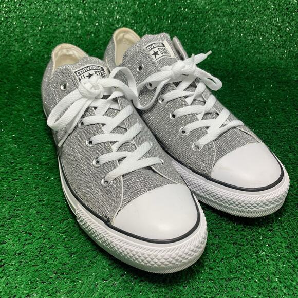 Converse All-Star Chuck Taylor Silver Glitter Low Sneakers 549679F Womens 10 US