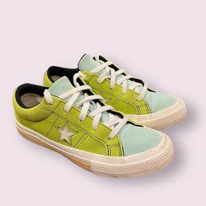 Near perfect condition. Unique color combo with a white/off-white/green colorway fashioning the empty 5-point start on both sides of the shoe.