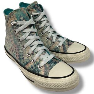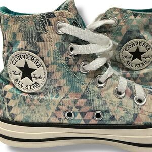 Converse Aztec Geometric Triangles Diamonds Teal Lined All Star Chuck Taylor Hi Tops US Women’s Size 5 | UK 3 | EUR 35 | CM 22