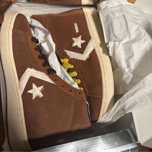 Classic Converse high-tops in brown with white star detail. Comfortable and stylish for everyday wear.