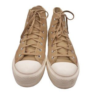 Converse Beige Tan Suede Platform High Top Shoes SZ 10