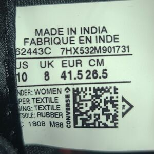 The product is a women's high-top sneaker by Converse, featuring a lace-up closure and a colorful design with sequin accents. The shoe is in a size 10, with a rubber outsole and a standard shoe width. It is part of the Chuck Taylor All Star product line and is suitable for various activities such as walking, school, and skateboarding. The shoe combines style and functionality, making it a versatile option for both casual and activewear occasions in any season.