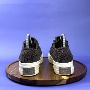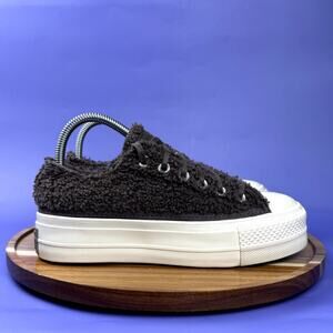 Stylish black fuzzy sneakers. Features a platform sole. Iconic Converse design.
