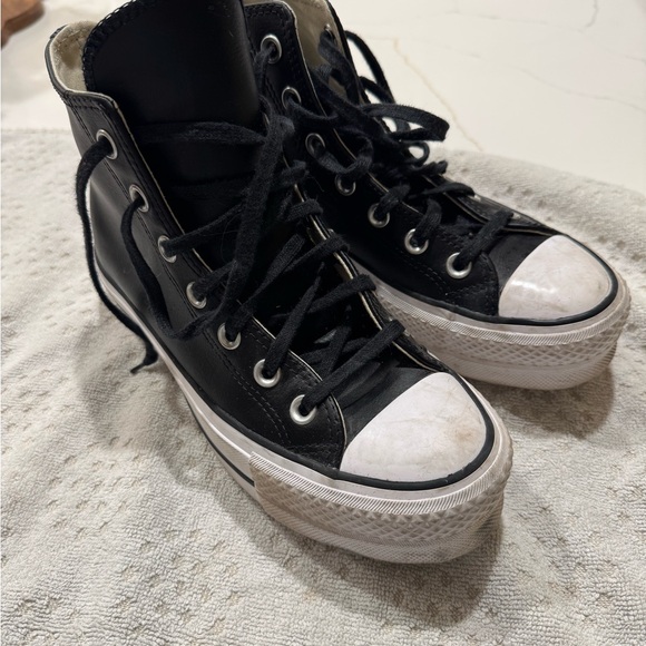 Converse Black High-Top Leather Platform Sneakers