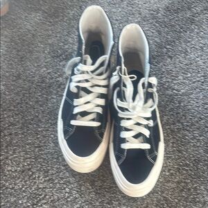 Stylish black high-top sneakers with white accents. Features the iconic Converse logo.
