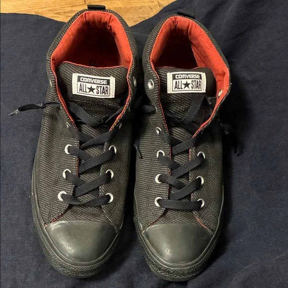 Converse Black High-Top Sneakers with Red Interior