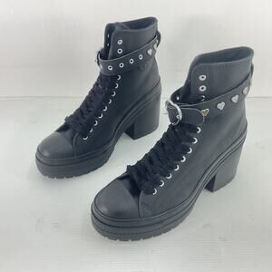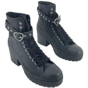 Converse Black Leather Hearts Platform Sneaker Boots Women’s Size 10.5 Preowned