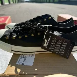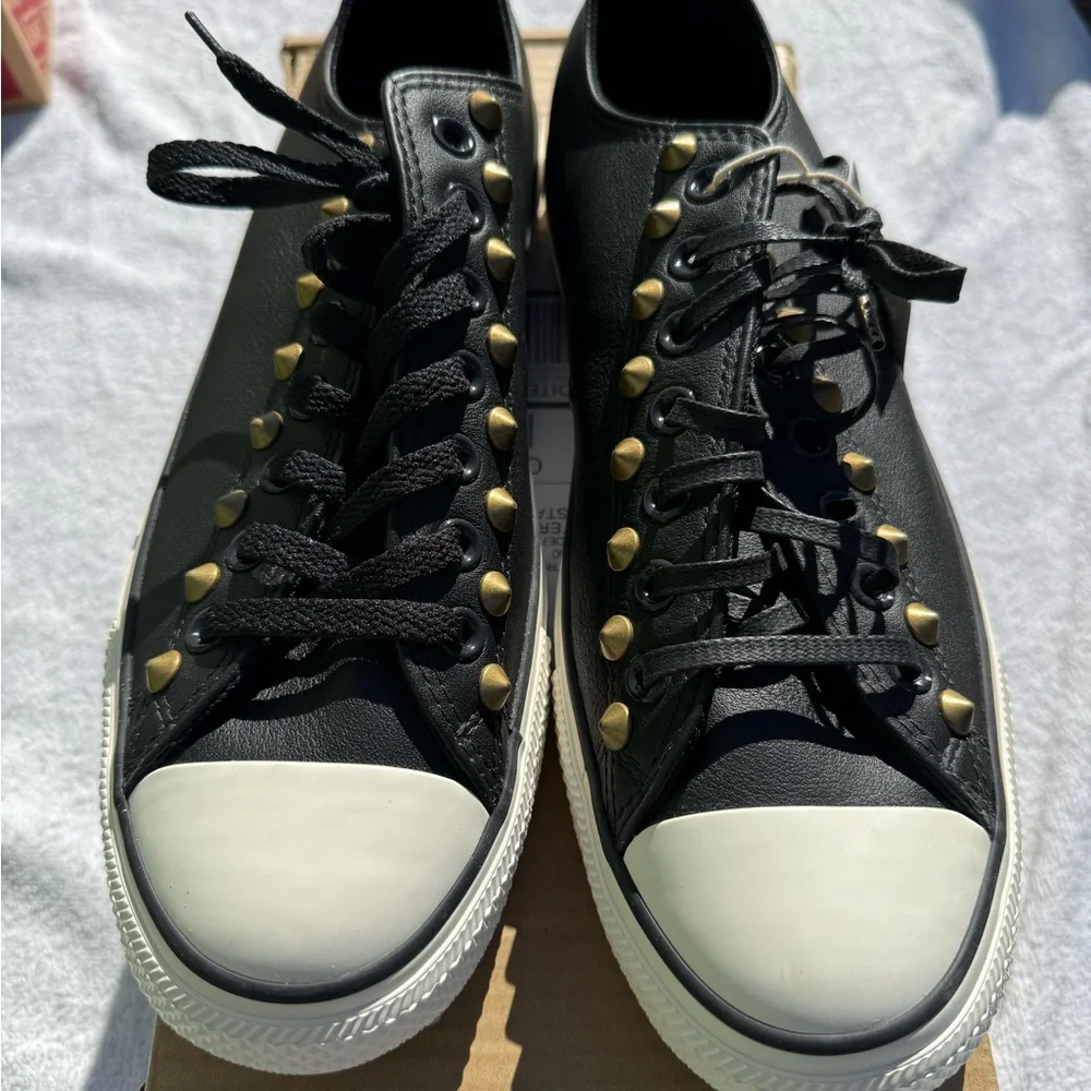 Converse Black Low-Top Sneakers with Gold Studs and White Toe Caps
