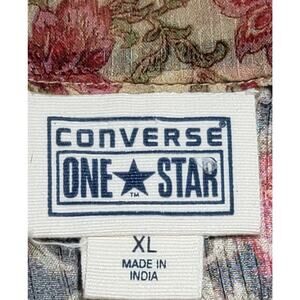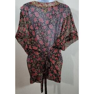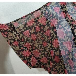 Converse Black Red Floral Sheer Button Up Top XL Lightweight Belted Soft Stretch