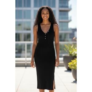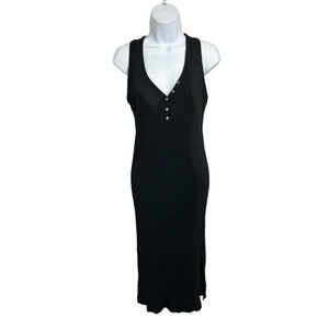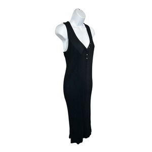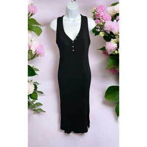 Converse Black Ribbed Fitted Midi Dress Sz Small Sleeveless V-Neck Casual