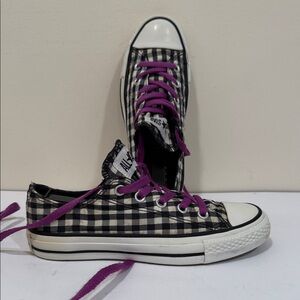 Converse Black and White Checkered Sneakers with Purple Laces (sz 6)