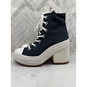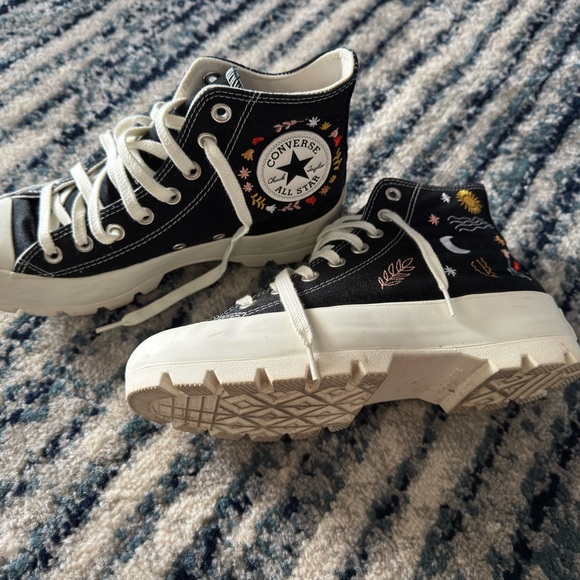 Gently Used. Chic black high-tops with white soles. Features colorful embroidery for a playful touch. Durable and stylish for everyday wear.